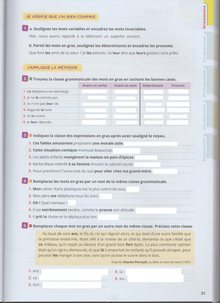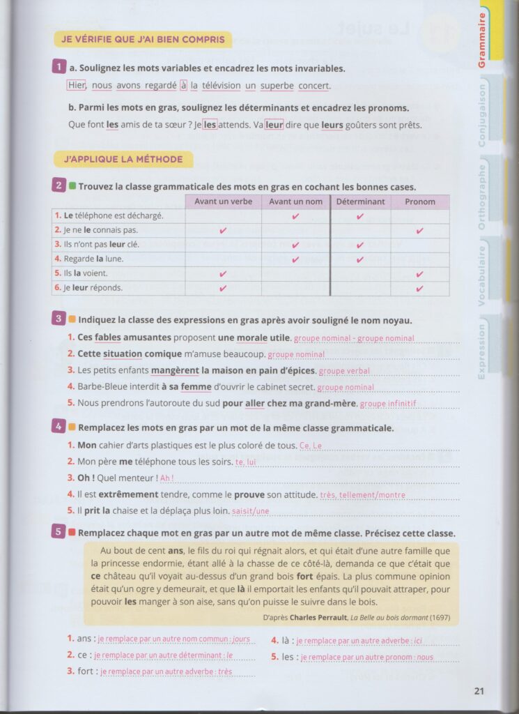 Les exercices pour approfondir de manière autonome (sixième, grammaire, séquence II) Voici une méthode bilan du travail effectué: Voici un test pour tester ses connaissances ainsi que sa correction: